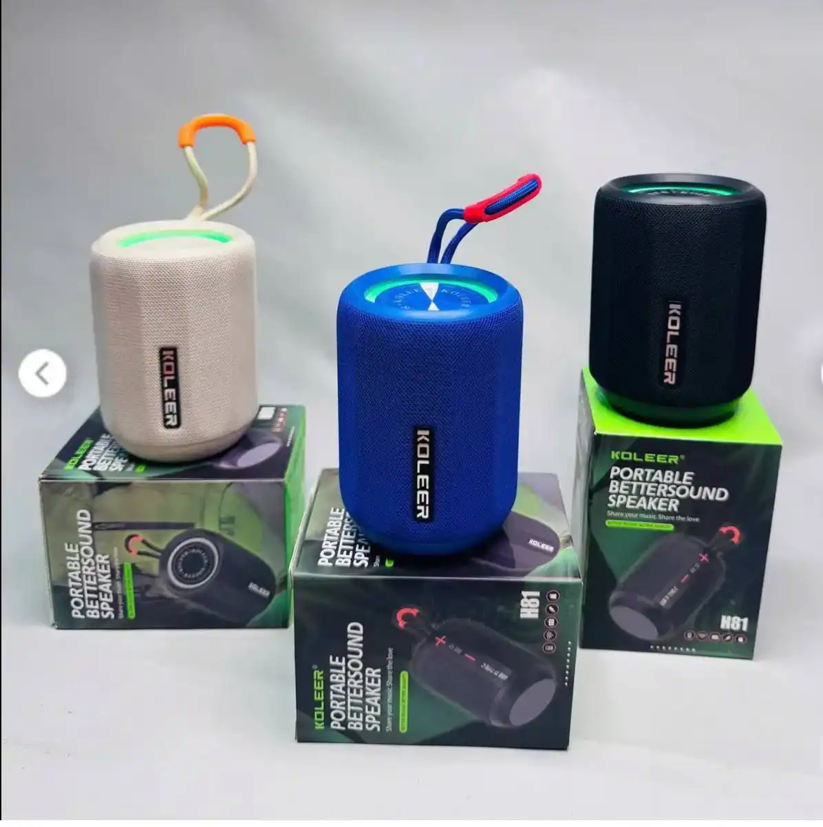اسپیکر بلوتوثی KOLEER مدل H81 یکی از اسپیکرهای پرقدرت و خوشساخت برند KOLEER است که با توان خروجی ۷ وات واقعی، کیفیت صدای فوقالعاده، طراحی استوانهای شیک و امکانات کامل پخش موسیقی، به یک انتخاب عالی برای استفاده روزمره، سفر، باشگاه و مهمانی تبدیل شده است.