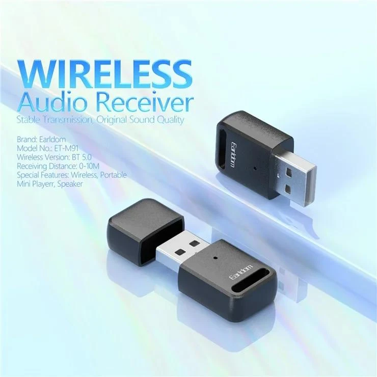 دانگل بلوتوث ارلدام مدل ET-M91 با وزن سبک و برد ۱۰ متر، انتخابی عالی برای افزودن قابلیت بلوتوث به دستگاه‌های صوتی خودرو و خانگی است.