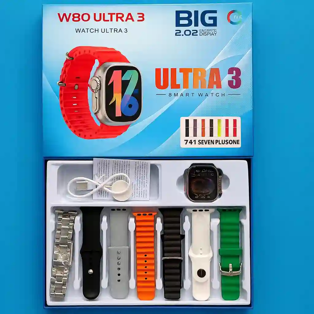 بستهبندی W80 Ultra 3 یکی از زیباترین طراحیها را دارد. ساعت و بندهای آن با نظم کامل داخل باکس قرار گرفتهاند و همین باعث شده این مدل برای هدیه دادن در تولد، سالگرد، مراسم و مناسبتهای مختلف یک گزینه عالی باشد.