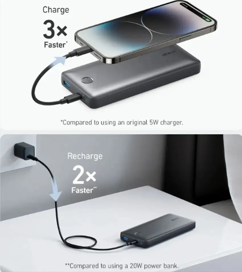 این پاوربانک با برخورداری از فناوریهای PowerIQ و VoltageBoost، بهترین سرعت شارژ سازگار با دستگاه را ارائه میدهد. توان خروجی بالا باعث میشود زمان شارژ دستگاههای مختلف، بهویژه گوشی و تبلت، کوتاهتر شود.