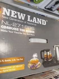 چای ساز نیولند مدل NL-2718BS یکی از مدل‌های خوش‌ساخت و کاربردی برند New Land است که برای استفاده روزمره در خانه یا محل کار طراحی شده است. این چای‌ساز از نوع صفحه‌ای بوده و کتری و قوری آن روی یک صفحه شیشه‌ای مقاوم قرار می‌گیرند که علاوه بر زیبایی، نظم بیشتری به فضای آشپزخانه می‌دهد.